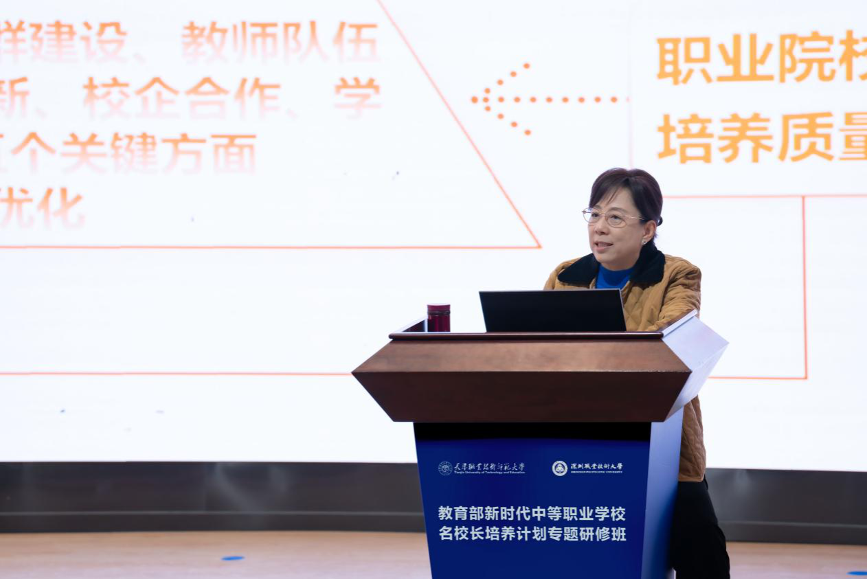 开班仪式结束后,研修班进入首日专题学习环节。李月副校长为全体学员作了题为《教育强国背景下以治理能力现代化推动职业院校高质量发展》的专题授课。李月结合深职大实践经验,系统阐述了教育强国背景下以治理能力现代化推动职业院校高质量发展路径与策略,并与学员进行了深入互动交流,为本次研修奠定了扎实的学理基础与实践导向。