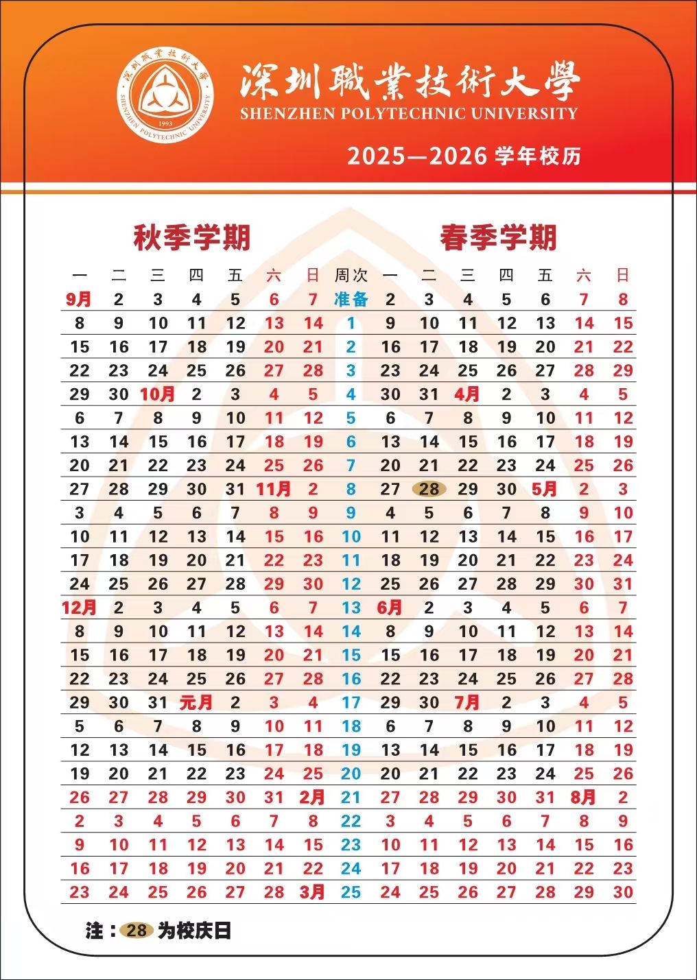 深圳职业技术大学2025年校历