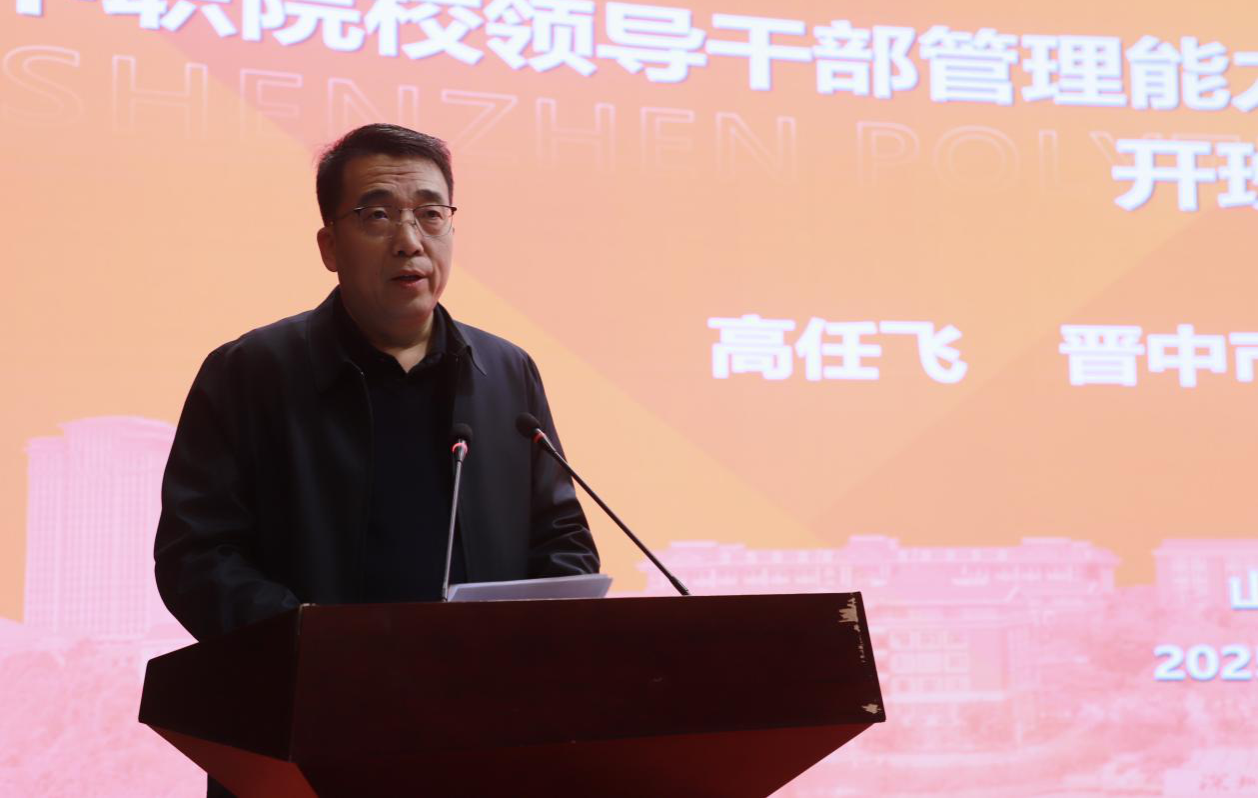 晋中市教育局副局长赵建刚对研修班开班及基地揭牌表示祝贺。他介绍,晋中已构建“1+11”职教发展格局,培育 4 个省级市域产教联合体,打造多个特色产业学院,职业院校连续十八届蝉联全省技能大赛团体总分第一,升学率超80%。他强调,深圳职业技术大学将基地落户晋中,为本地职教发展注入新动能,晋中市教育局将全力做好支持保障。